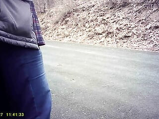 危険な裸の駐車場の散歩