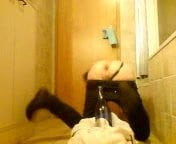 フィスティング、お尻とパンストにボトル
